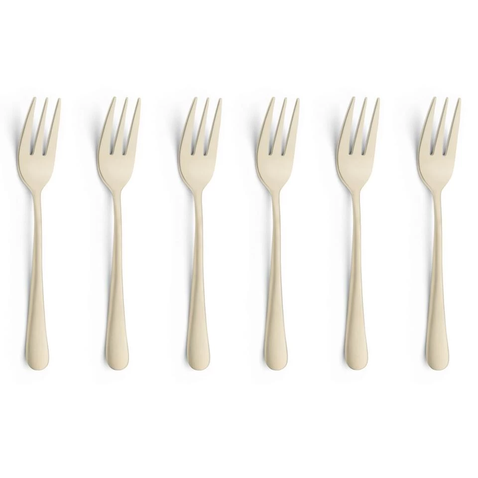 • 6 Gebaksvorkjes <br><br>Dit bestek is gemaakt van de beste kwaliteit roestvrij staal en is afgewerkt met een dunne, voedselveilige titanium coating die zorgt voor een levendige kleur.<br><br>