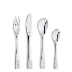 De vos, eekhoorn, konijn en egel zijn je kleine’s vriendjes uit het bos. Met hun beeltenis op de handvatten van dit fijne 18/10 bestek is elke maaltijd een waar feest.