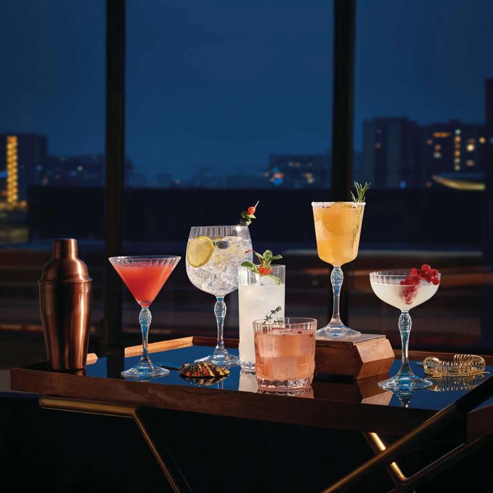 De elegante glasserie met fijne facetten is geïnspireerd op de glamoureuze stijl van jazzbars in het Amerika van de jaren twintig. Het perfecte glas om te genieten van weekenddrankjes en cocktails in gezellig gezelschap.
