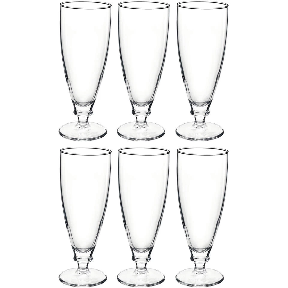 6x Stuks luxe Harmonia bierglazen op voet 380 ml. Een set met 6x luxe bierglazen op voet, geschikt voor speciaalbier en uiteraard gewoon bier.