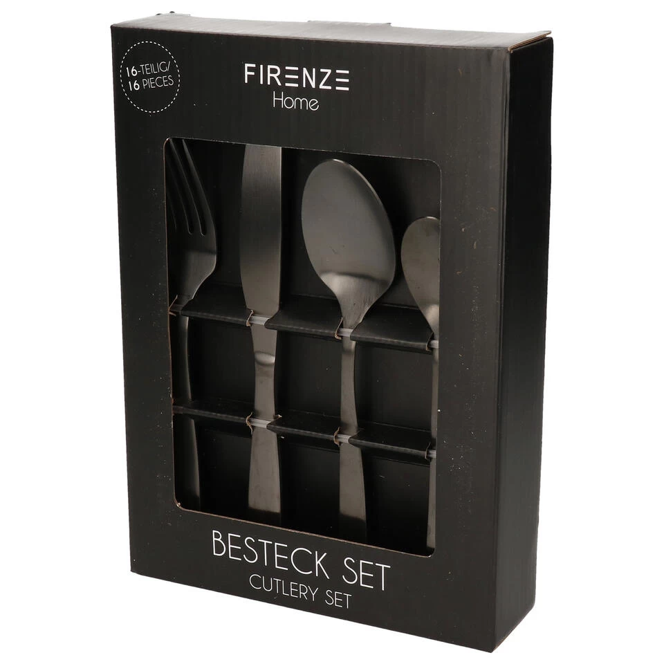 Cepewa Bestekset – 16-delig – RVS – Glans Zwart – 4 Personen