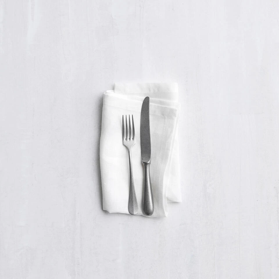 De hoeken van de servetten zijn fraai afgewerkt met een zogenaamde “schilderijhoek”. De servetten zijn verkrijgbaar in de kleuren white, natural en grey, in de afmetingen 40×40 cm.