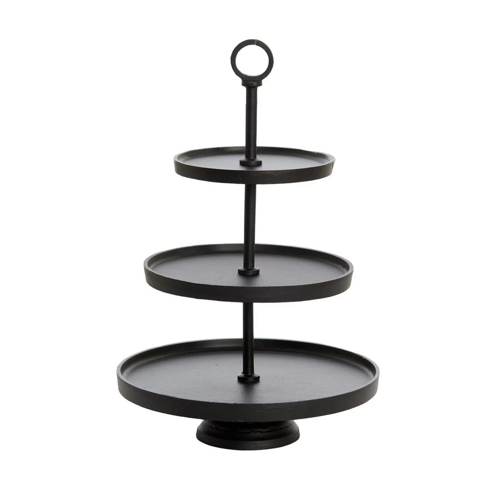 Deze zwarte etagère Marozu is multifunctioneel. Gebruik de etagère bijvoorbeeld handig tijdens een verjaardag of lunch om kleine hapjes op te leggen. Natuurlijk is deze ook erg leuk te gebruiken om kleine accessoires op te zetten, zoals een dennenappeltje of theelichthouder. De etagere is handgemaakt en kan daardoor kleine oneffenheden bevatten op de gladde afwerking. Dit maakt de etagère juist zo uniek! De etagère past goed in een modern interieur en is daarnaast ook leuk te plaatsen op een sidetable. De afmeting van de etagère is Ø32 x 48 cm.