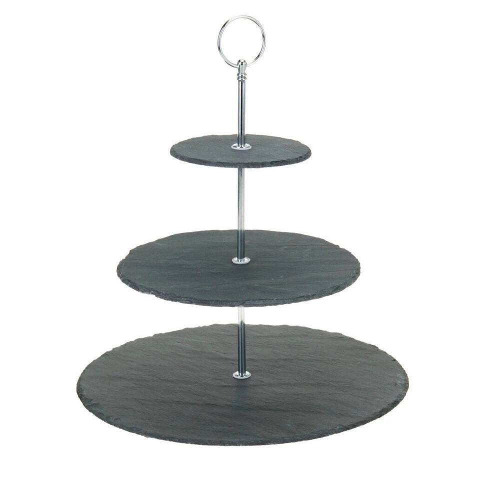 Excellent Houseware Etagere – 3-laags – Leisteen En Chroom – 30 X 34 Cm
