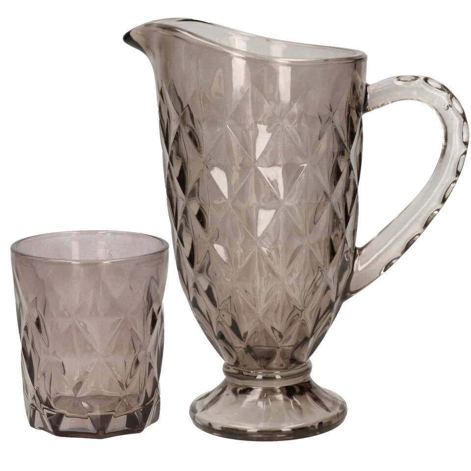 Excellent Houseware – Karaf/schenkkan 1L – 6 Drinkglazen – 250ml – Glas – Grijs