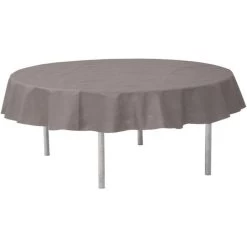 Grijs rond tafelkleed/tafellaken 240 cm non woven polypropyleen. Rond tafeldecoratie kleed van grijze non woven materiaal. Het tafelkleed is geschikt voor gebruik binnenshuis (binnen/indoor) en voor gebruik buitenshuis (buiten/outdoor) bij goede weersomstandigheden.