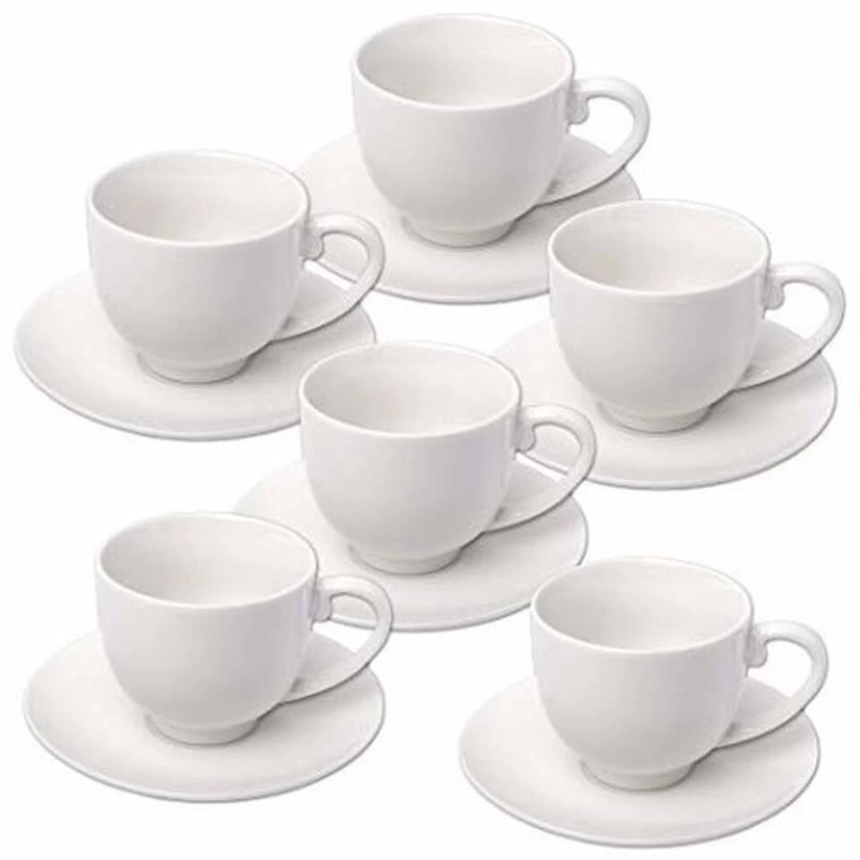 Merkloos Alpina Espresso Koffiekopjes Met Schotel – 6 Stuks – Keramiek – 75 Ml
