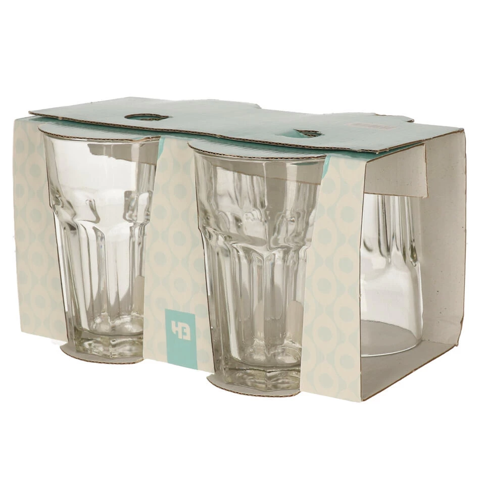 Een set met 4x water glazen, met een inhoud van ca. 360 ml. Geschikt voor in de vaatwasser. Materiaal: glas.