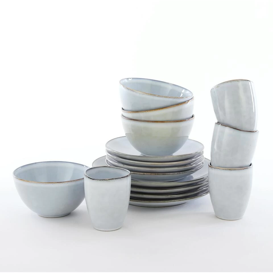 Rustiek en robuust, zo kan het Tabo servies van Mica Decorations het beste worden omschreven. Geen wit porselein met saaie volmaakte lijnen, maar handgemaakte, keramieken producten in neutrale tinten. Elk met een eigen, authentieke look die past bij puur genieten. Waarom zou je dan voor één item gaan als je ook gelijk een hele set kan nemen? Deze Tabo serviesset bestaat uit 16 delen en is geschikt voor 4 personen. De set telt 4 mokken van H10,5 x Ø8 cm, 4 schaaltjes van H8 x Ø15 cm, 4 kleine borden van Ø20,5 cm en 4 dinerborden van Ø26 cm. Het servies past door de moderne, grijsblauwe kleur in elk interieur! Daarnaast kan elk item zowel in de vaatwasser als in de magnetron worden gezet en is het servies hittebestendig tot 180°C.