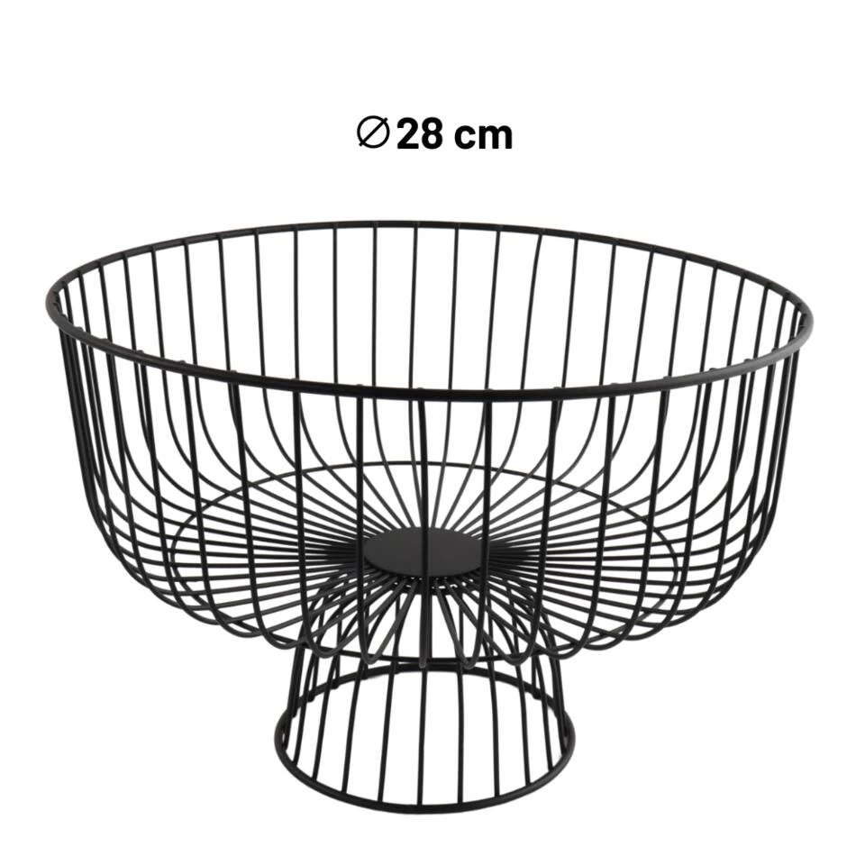 Deze fruitmand van Orange85 heeft een luxe uitstraling. De mand is gemaakt van metaal en heeft een zwarte kleur. Doordat er genoeg zuurstof bij het fruit kan komen, bederft het fruit minder snel. De schaal heeft een diameter van 28 cm en een hoogte van 18.5 cm.