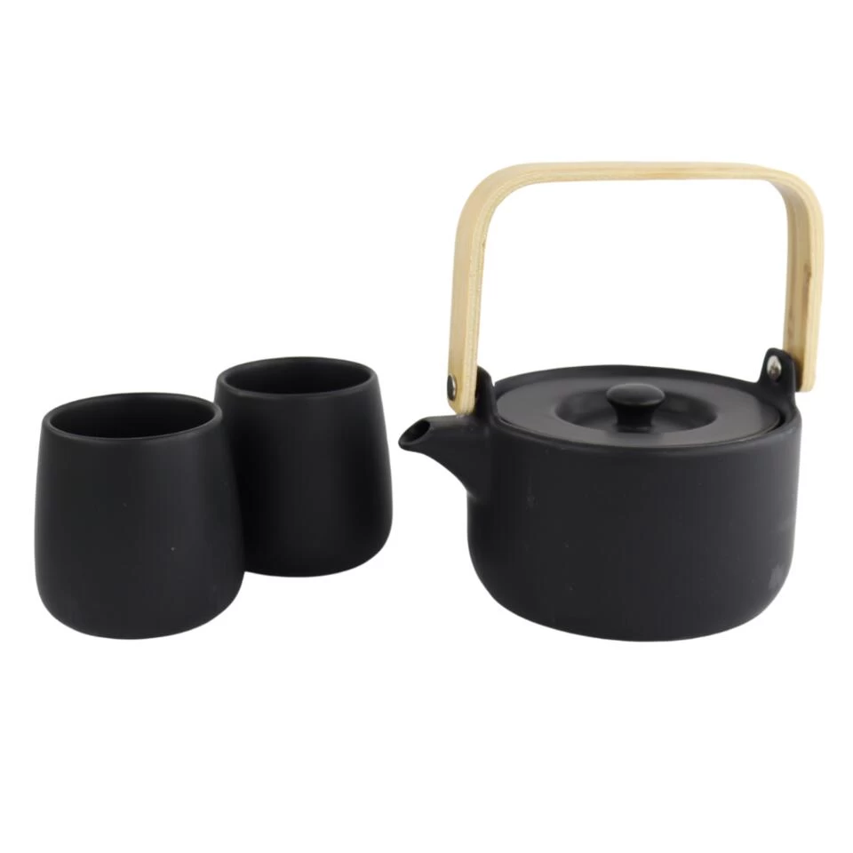 Deze Orange85 theepot zwart 50cl staat mooi op iedere tafel. De theepot is gemaakt van aardewerk. Dit materiaal houdt de warmte goed vast waardoor de thee lang lekker blijft. Het handvat is gemaakt van bamboe wat niet warm wordt. Dit zorgt ervoor dat je de thee op ieder moment kunt inschenken. De inhoud van deze theepot is 50 cl waar je gemiddeld 2.5 kopjes thee uit kunt halen. De theepot wordt geleverd met twee kopjes in dezelfde kleur. De inhoud van de kopjes is 20 cl. Niet geschikt voor de vaatwasser.