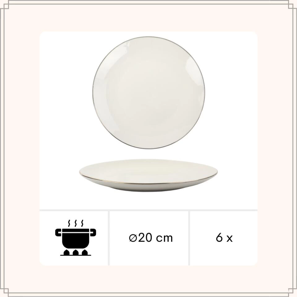 OTIX Ontbijtborden Borden Set Van 6 Stuks 20cm Wit Met Gouden Rand Porselein
