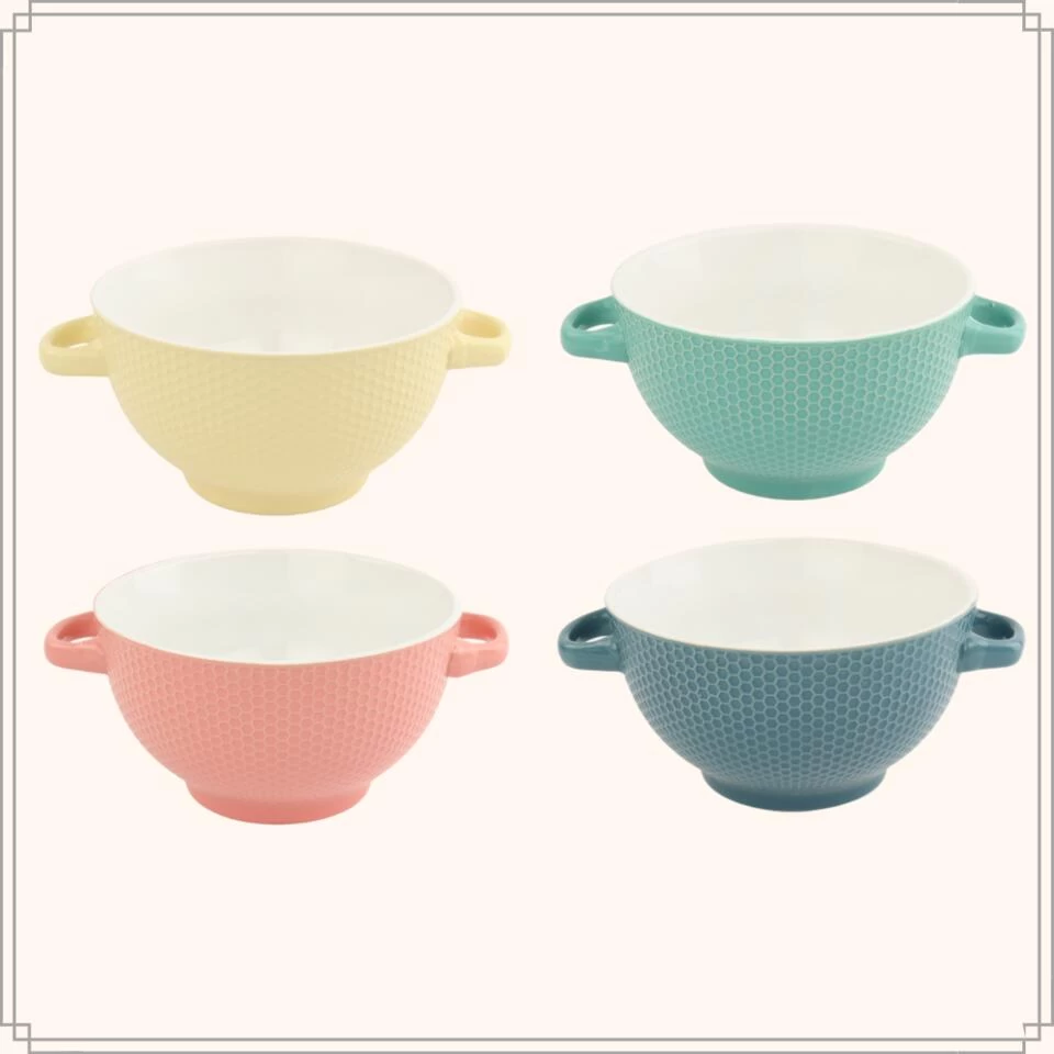 Soepkommen van het merk OTIX. De set bestaat uit 4 soepkommen met verschillende kleuren. Het materiaal van de kommen is aardewerk en de inhoud is 680 ml. De soepkommen zijn geschikt voor in de vaatwasser.