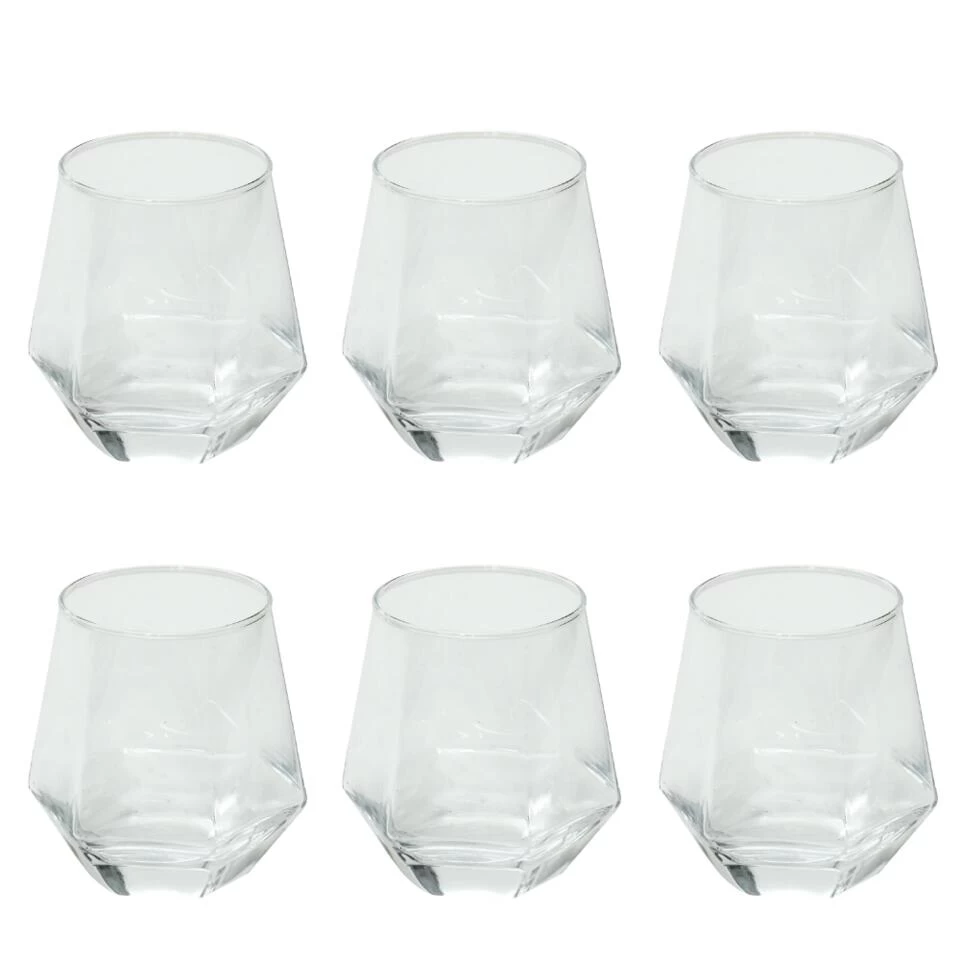 OTIX Waterglazen Set Van 6 300ml Diamant Vorm Transparant Glas