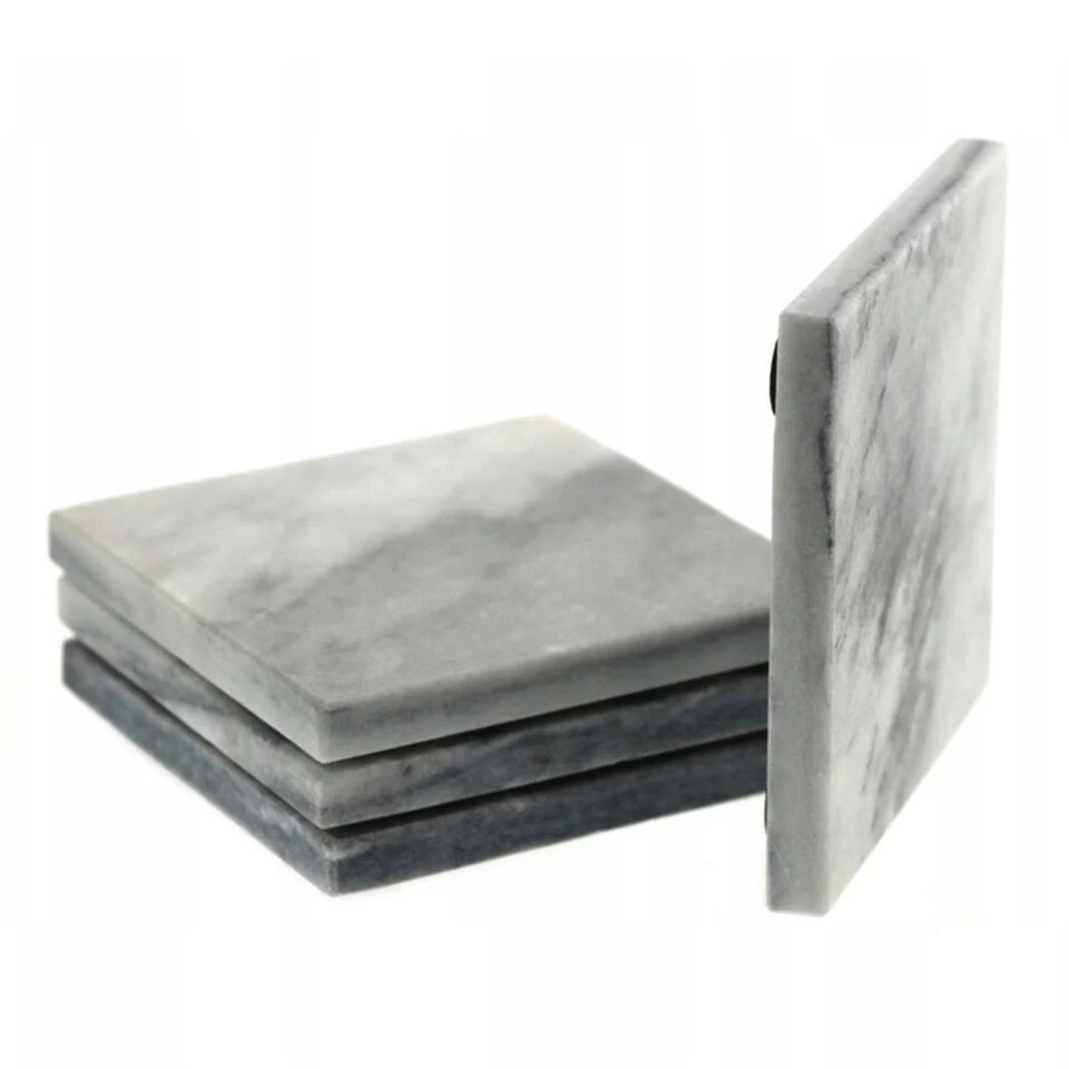 Set van 4 glazenonderzetters marmer steen 10 cm. Geschikt voor glazen/bekers. Met anti-slip nopjes aan de onderkant. Afmeting: ca. 10 x 10 x 1 cm. Materiaal: marmer. Reinigen: afnemen met vochtige doek. De opdruk/kleur kan iets afwijken en verschillen per onderzetter.