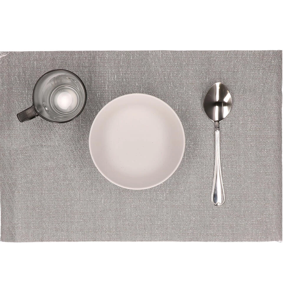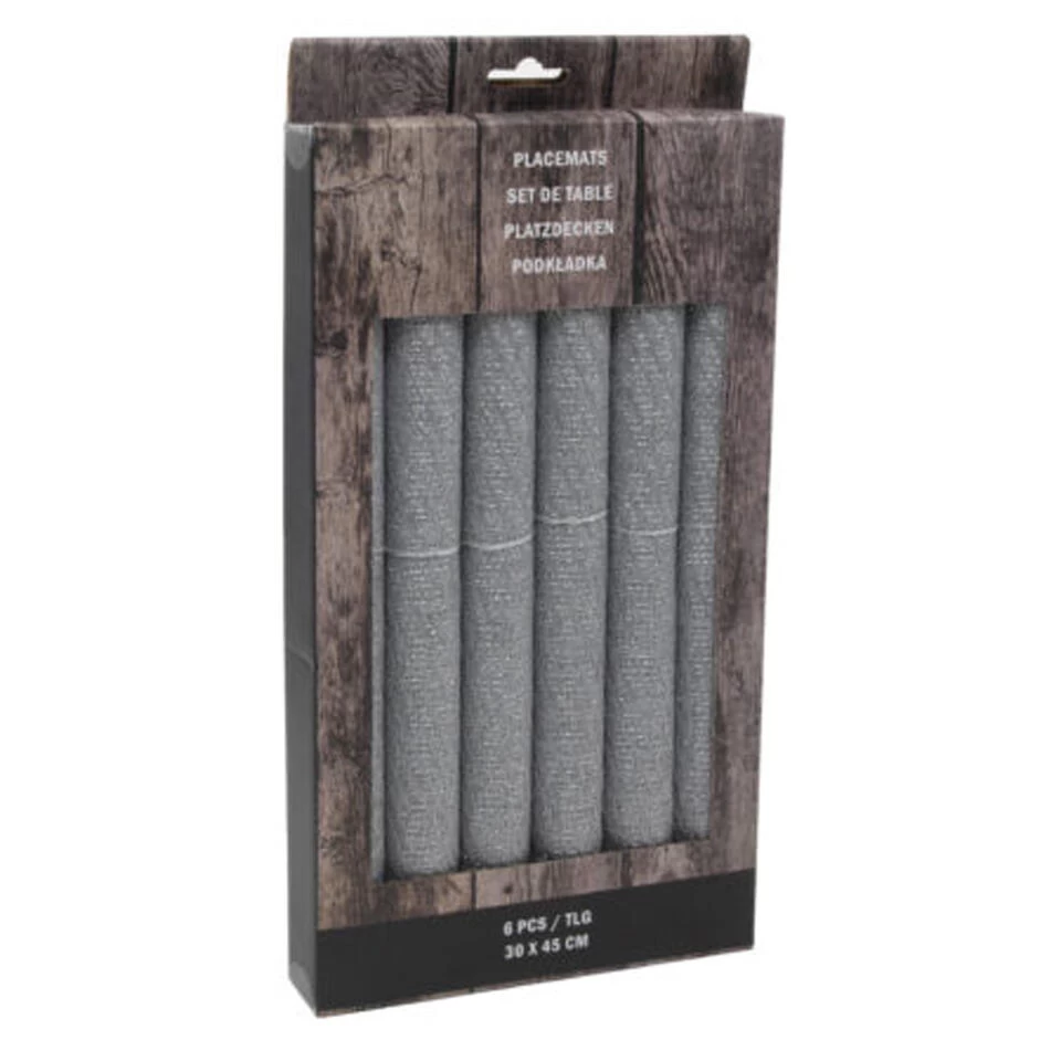 Placemats set van 6x stuks licht grijs 45 x 30 cm. Materiaal: polyester. Makkelijk af te nemen met enkel een vochtige doek. Placemats/onderleggers tafeldecoratie. Tafel dekken voor het diner.
