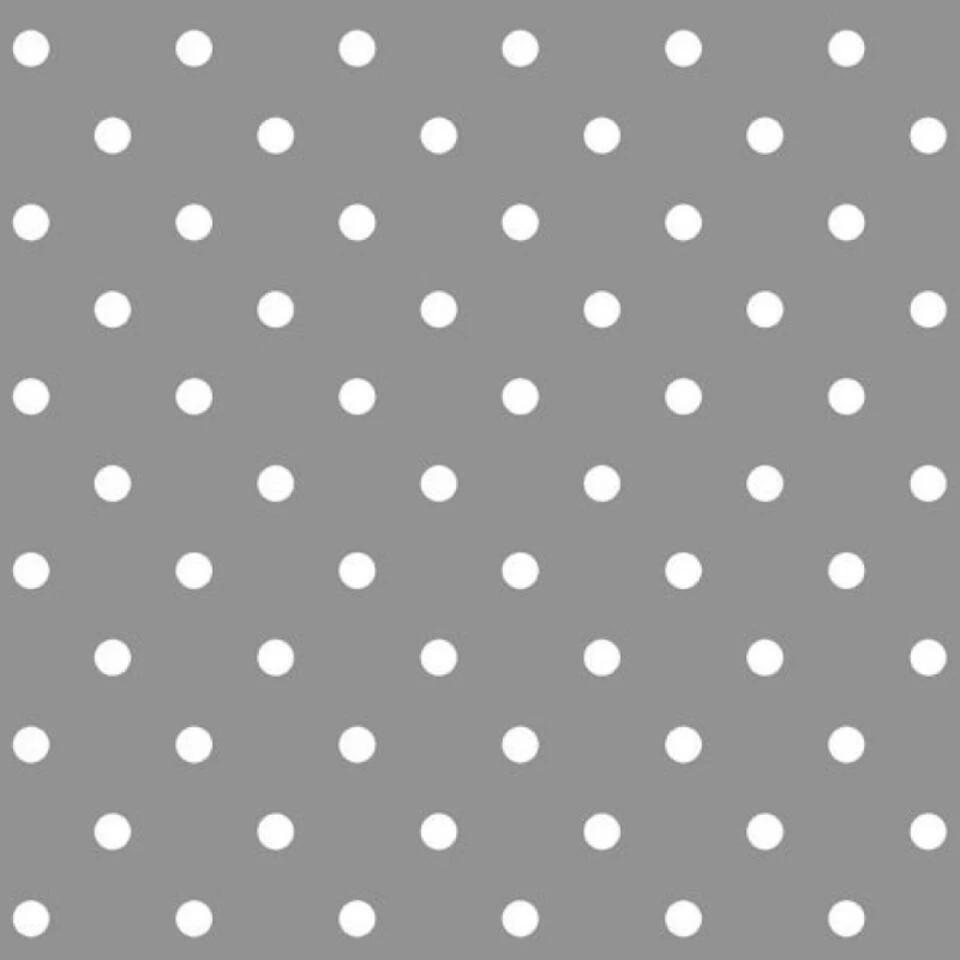 Tafeldecoratie zeil in grijs met witte polkadots stippen print. Afmeting: 140 x 250 cm. Het tafelzeil valt het mooiste rondom een tafel van 100 x 210 cm, zorg bij een grotere tafel voor een minimale overhang van 10 cm aan alle zijdes. Materiaal: PVC met zachte non-woven onderlaag. 100% waterdicht en valt soepel rondom de tafel. Enkel afnemen met een vochtige doek, geen schoonmaakmiddel gebruiken dit zal de print aantasten. Langdurige blootstelling aan diverse weersomstandigheden zal de print ook aantasten en/of doen verkleuren. Geschikt voor zowel binnen als buitenshuis.
